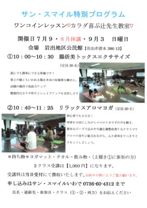 7月9日・9月3日 日曜日開催します。8月は都合により休講いたします。