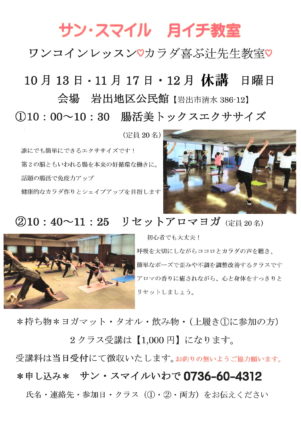 10月13日 11月17日 12月休講 日曜日に開催します。12月は残念ながら休講です