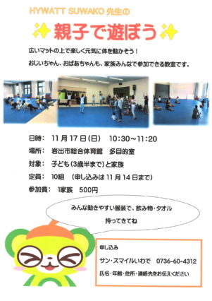 楽しく元気に体を動かそう。家族みんなワンコインでご参加いただけます!申し込み受付は11月14日までになります。