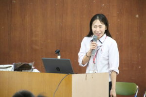 ヤクルトの栄養士、中村さんから成長期に必要な食育のお話。クイズ大会もありました。 |