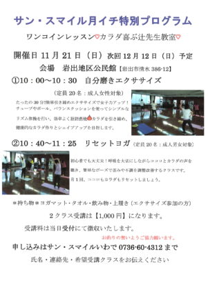 日曜の月イチ教室開催 11月分募集受付中